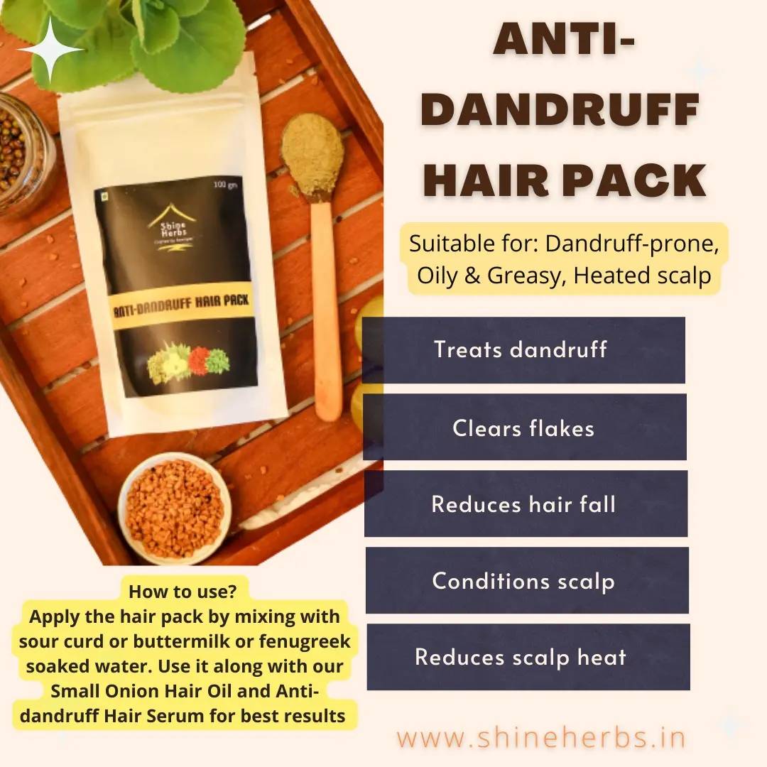 To use, Take required quantity of the Anti-dandruff Hair Pack in a bowl, mix with curd & add a dash of Lemon Juice or Apple Cider Vinegar. Apply it on scalp & hair. Leave for 15-20 minutes. Wash off using Shikakai Powder or a mild shampoo .