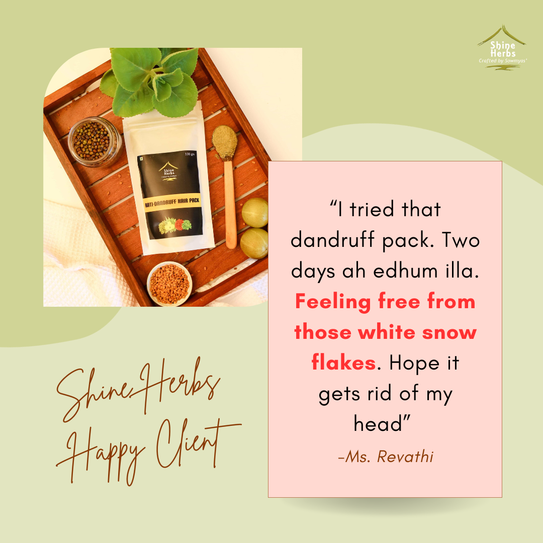 Made of ingredients rich in anti-bacterial, anti-inflammatory properties such as Neem, Tulsi, Poduthalai, Arappu, etc.. that helps in treating dandruff, scales & flakes on consistent usage .