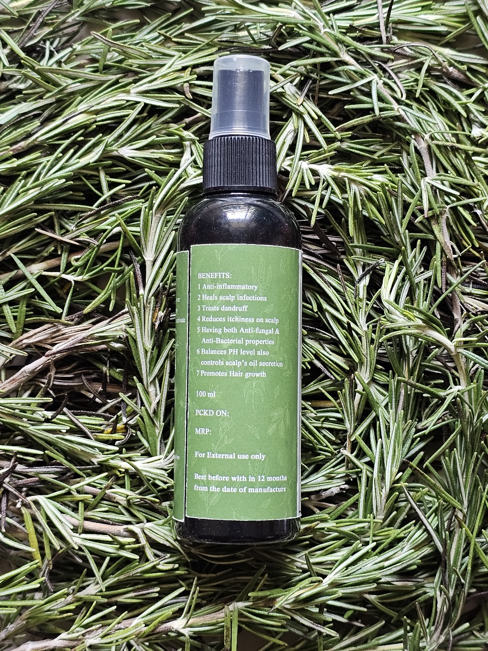 Spray Rosemary Hydrosol on to your scalp, gently massage and let it air dry. Use it after shower or every night before going to sleep for best results